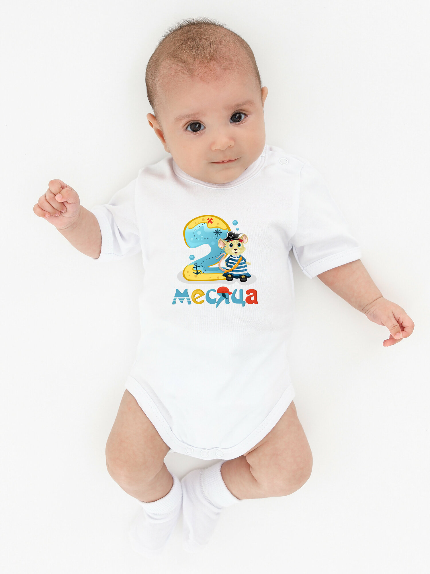 Боди Валерия Мура белый "Пират 2 месяца", 62 информация: