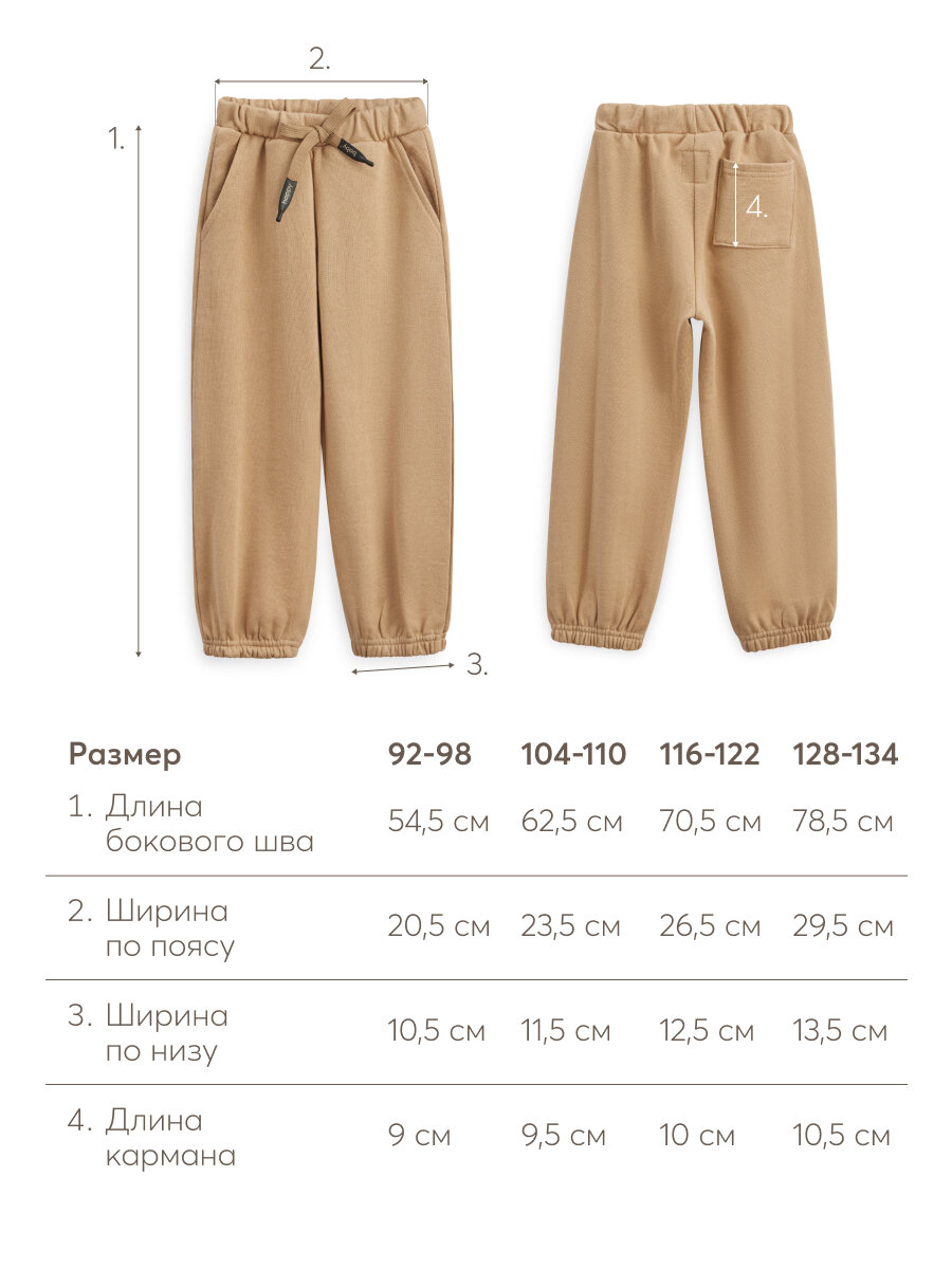 88223, Детские брюки Happy Baby, для мальчиков и девочек, с манжетами на брючинах, бежевые, размер 104-110 2 954 ₽