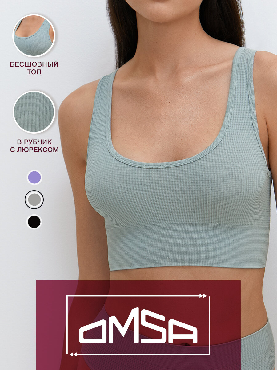 Toп женский Omsa Lurex Wafle 1142-03SS бесшовный на широких бретелях, цвет Grigio Chiaro размер 44/46 (S/M) 412 ₽