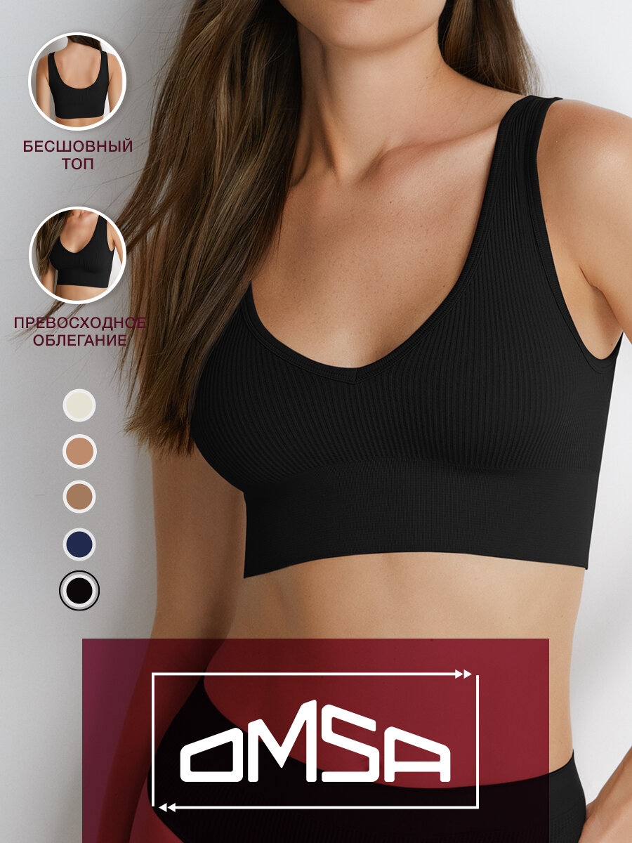 10 цен на Топ-бра OMSA Wafle 1142-01SS бесшовный, в рубчик, спортивный из микрофибры цвет Nero размер 48/50 (L/XL)