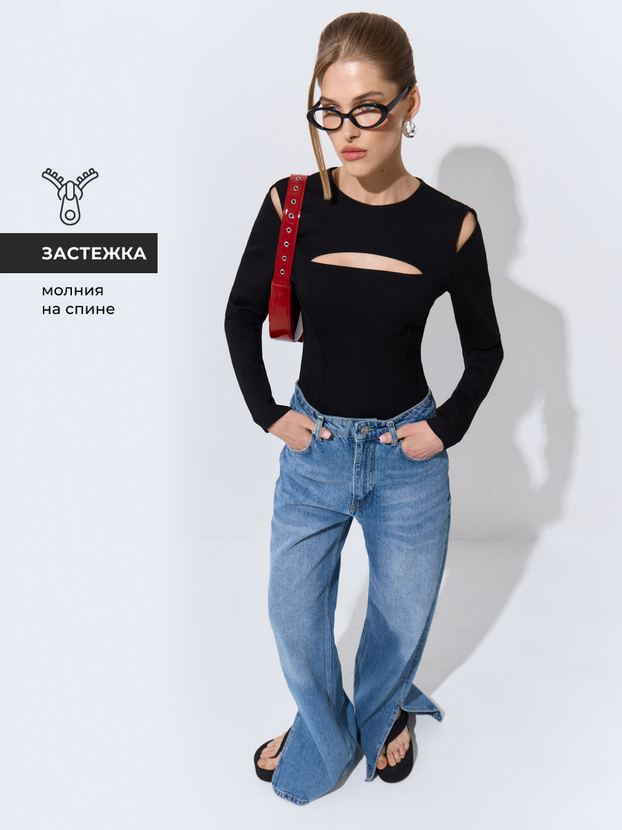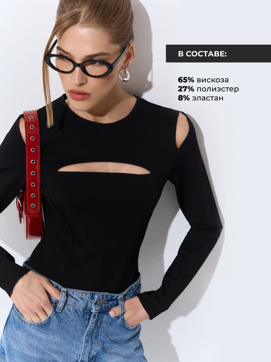 10 цен на Блузка боди женская с длинным рукавом и вырезом, утягивающее-L