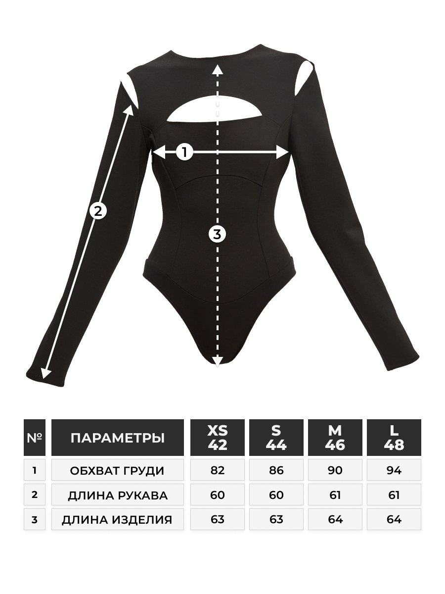 Блузка боди женская с длинным рукавом и вырезом, утягивающее-M информация: