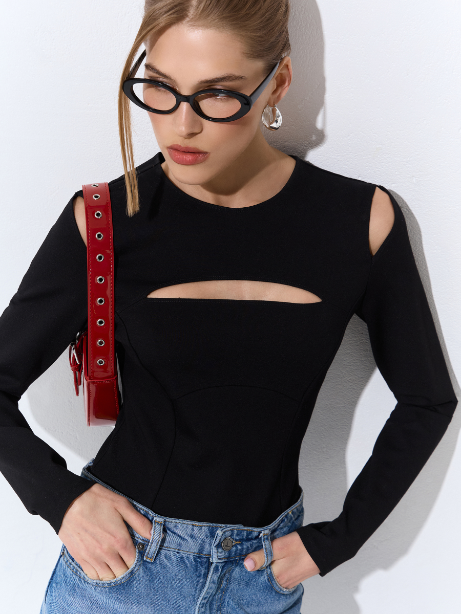 10 цен на Блузка боди женская с длинным рукавом и вырезом, утягивающее-XS