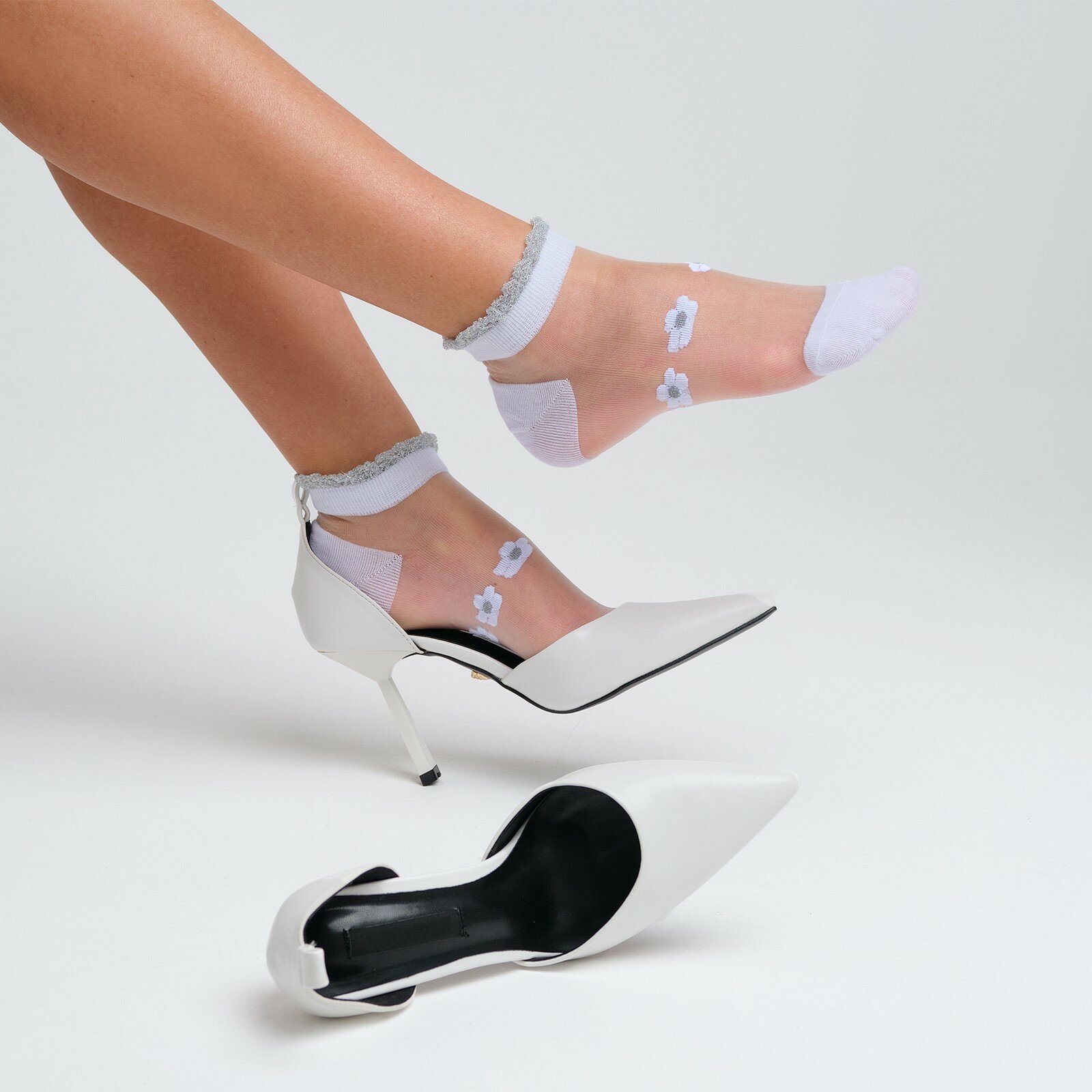 Носки женские стеклянные MINAKU Цветы , цвет белый, размер 36-37 (23 см)