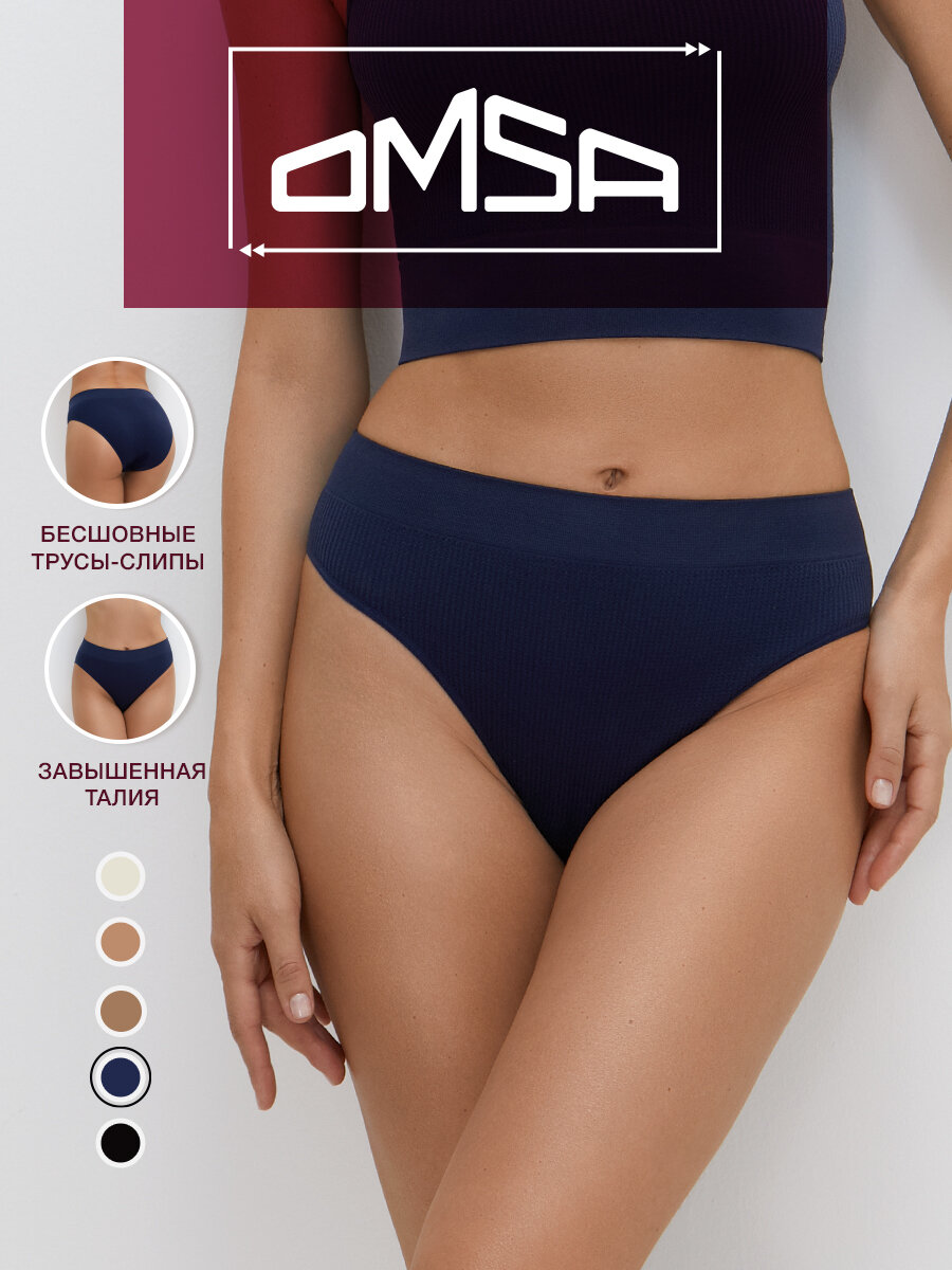 10 цен на Трусы-слипы OMSA Wafle 2242-01SS Slip Alto, в рубчик, бесшовные из микрофибры, цвет Blu размер 44/46 (S/M)