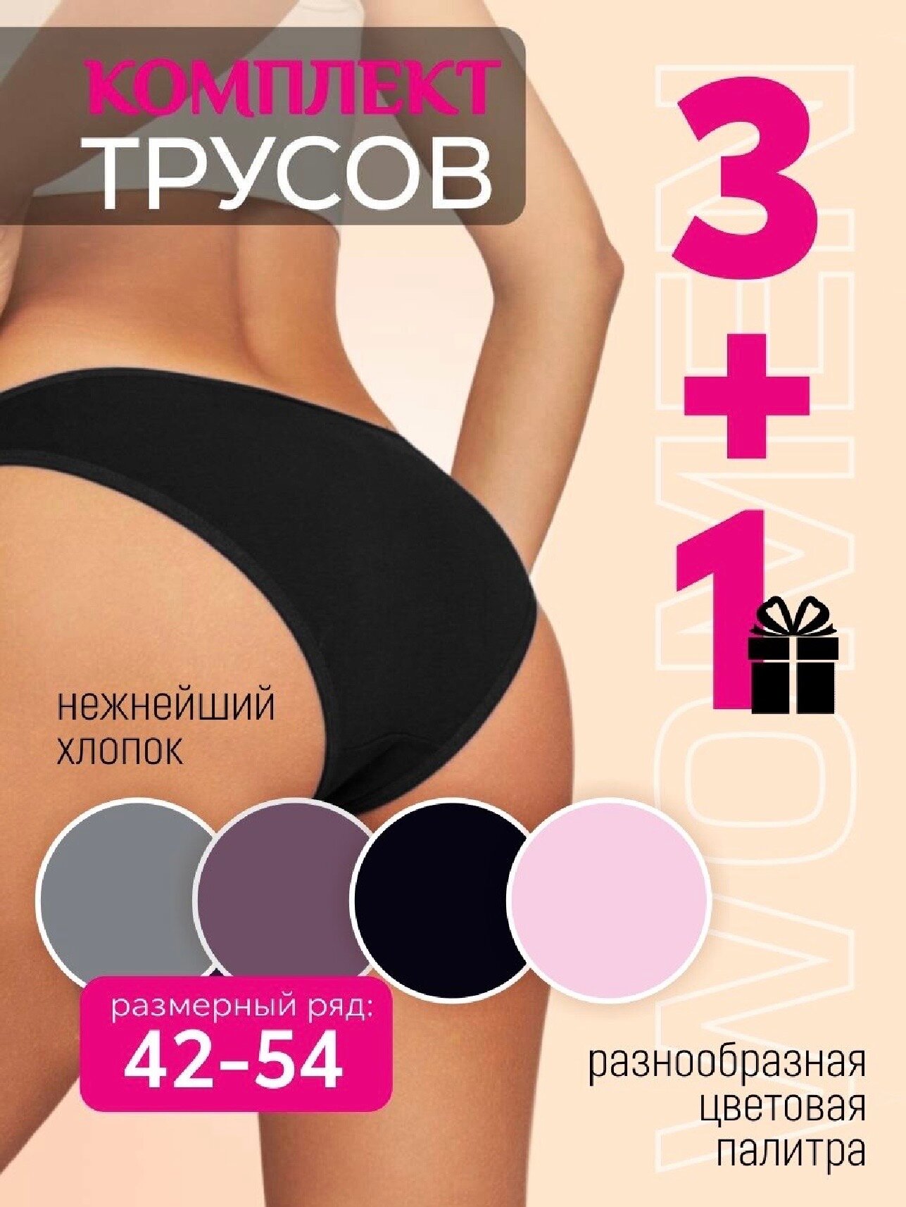 Трусы , комплект из 4 шт., размер 52-54, черный/розовый/серый/фиолетовый 645 ₽
