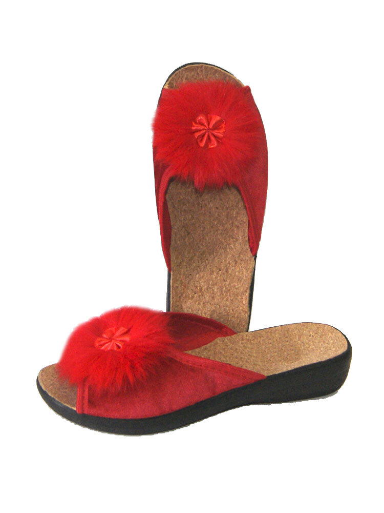 Отзывы на Тапочки домашние женские на каблуке с пушком и пробковой стелькой,красные, 36 размер