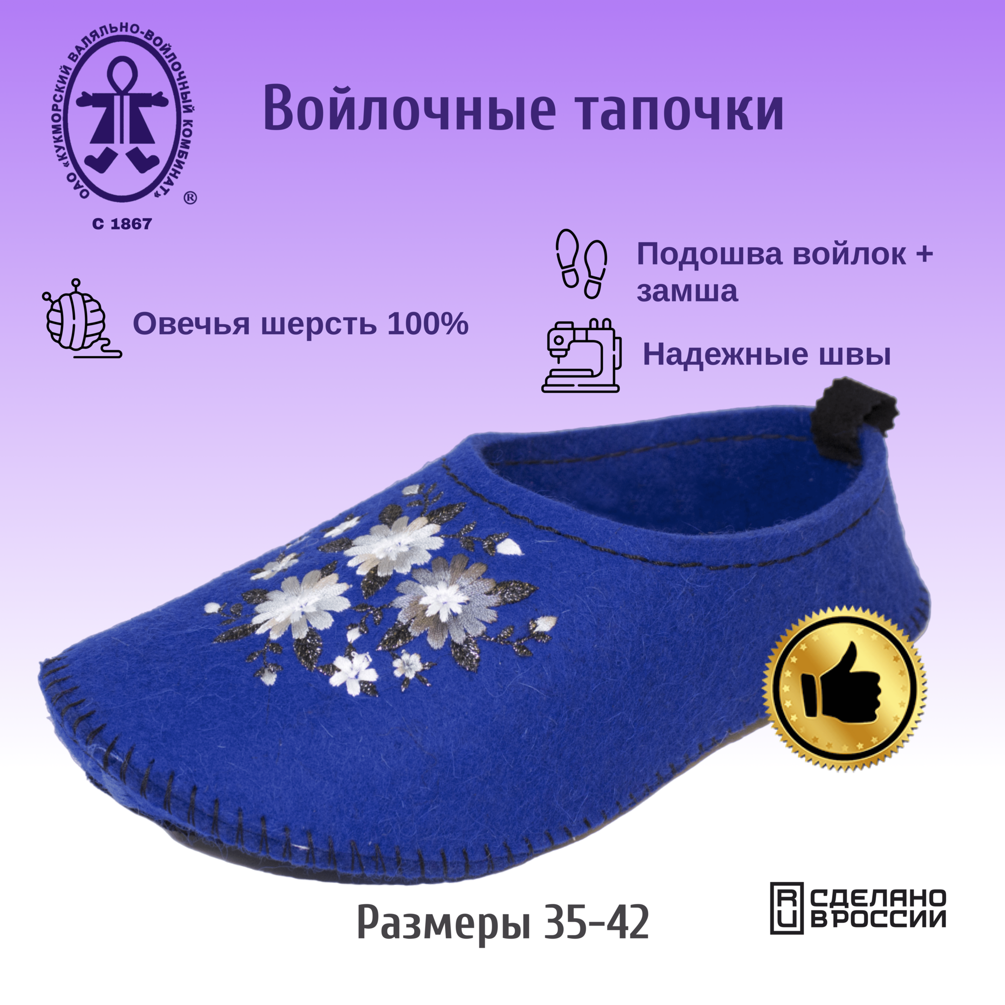 10 цен на Чешки (следки) женские Кукморские войлочные Т-34-2072 "Триумф" синие на войлочной подошве р.40