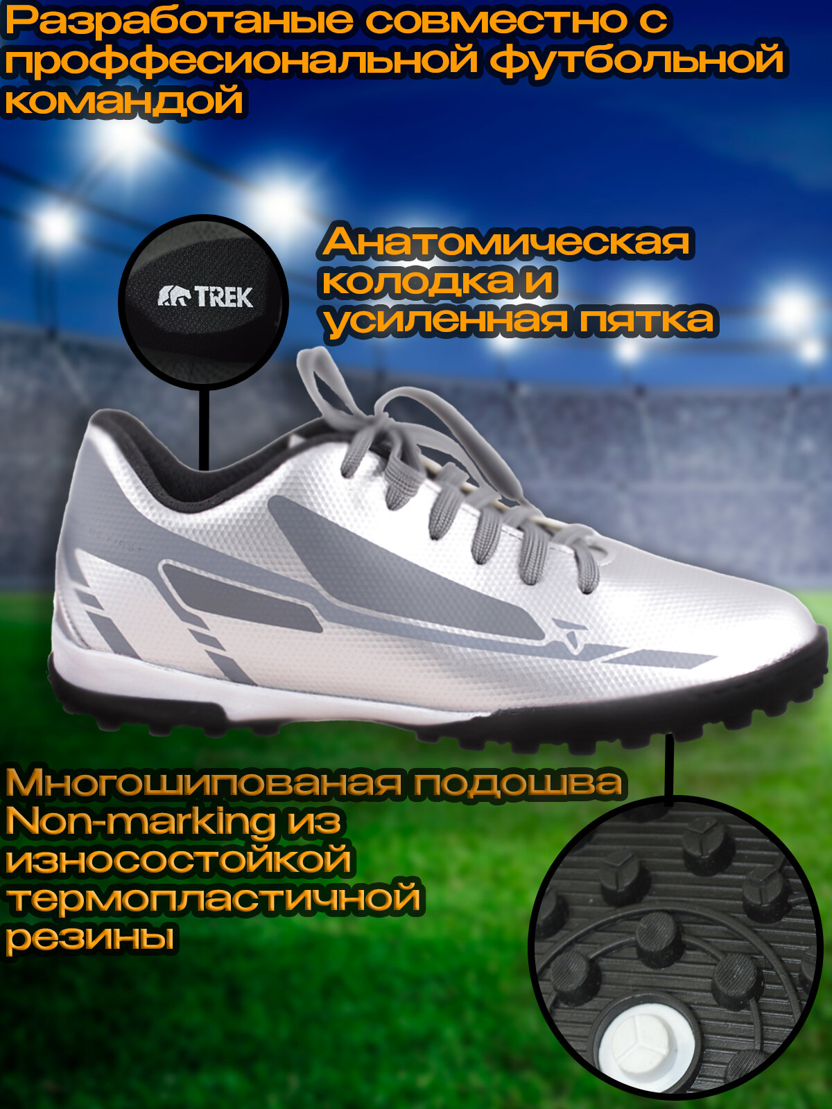 Отзывы на Бутсы футбольные сороконожки TREK BeFirst, серебристые, размер 42