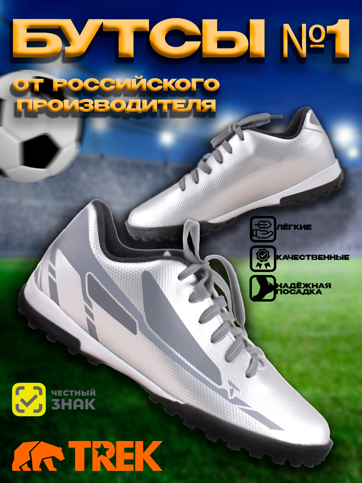 Отзывы на Бутсы футбольные сороконожки TREK BeFirst, серебристые, размер 40