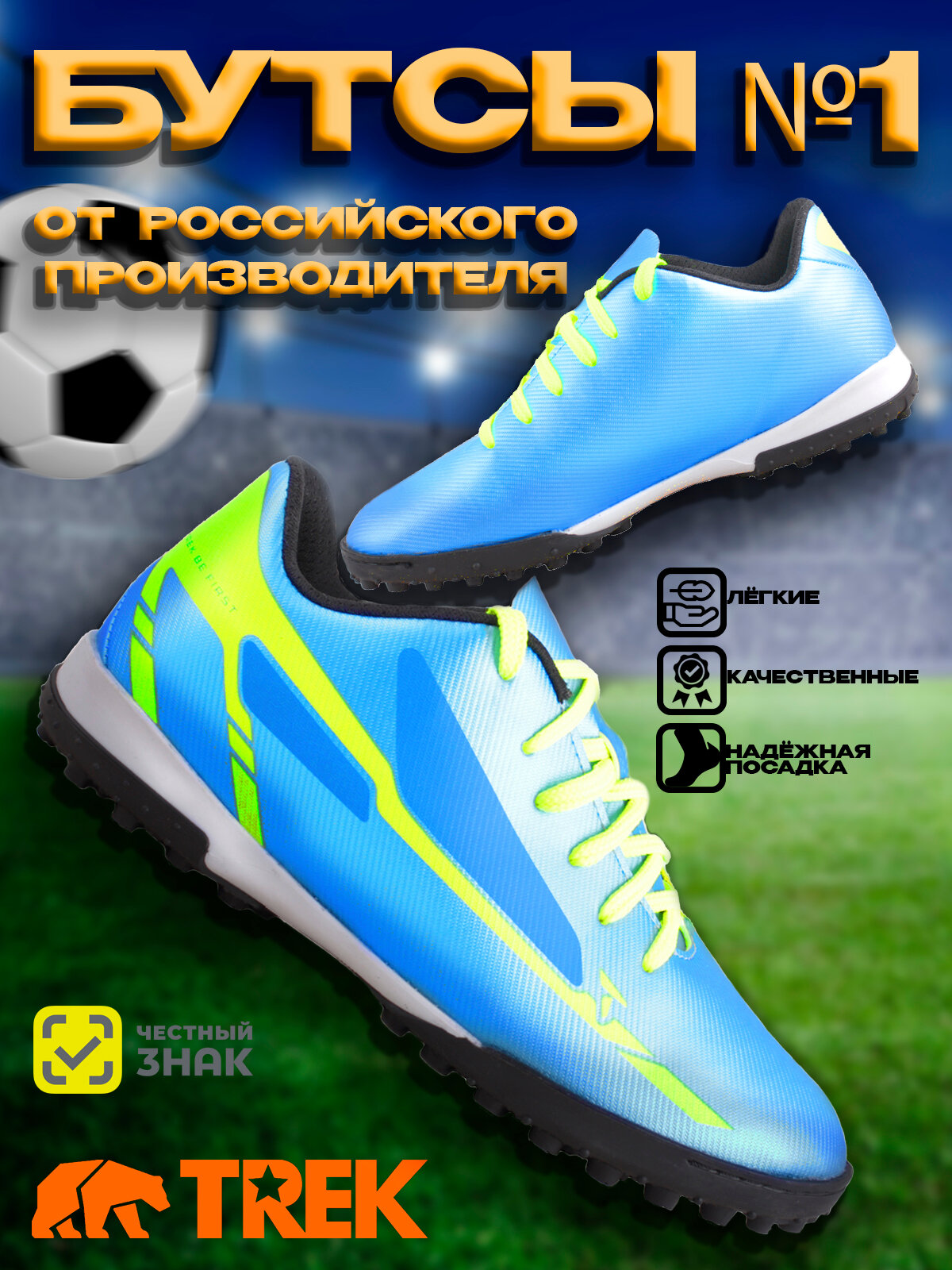 10 цен на Бутсы футбольные сороконожки TREK BeFirst, голубые, размер 45