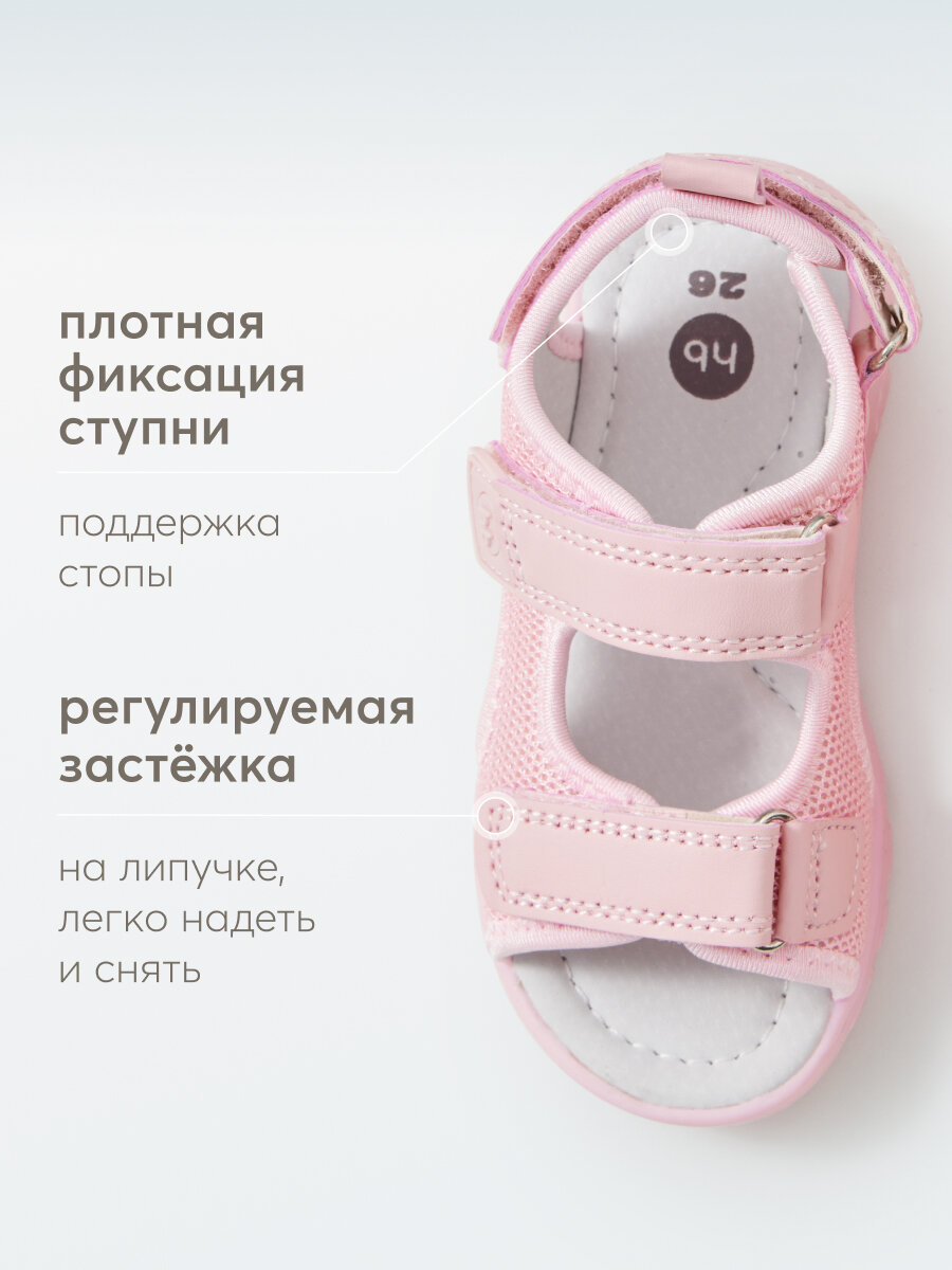 86528, Сандалии детские Happy Baby, босоножки для мальчика и для девочки, летние, в садик, на липучке, розовый, размер 29 3 067 ₽