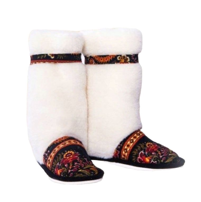 10 цен на Унтяши сапожки из белой овечьей шерсти на ЭВА 35-36 р черный рисунок