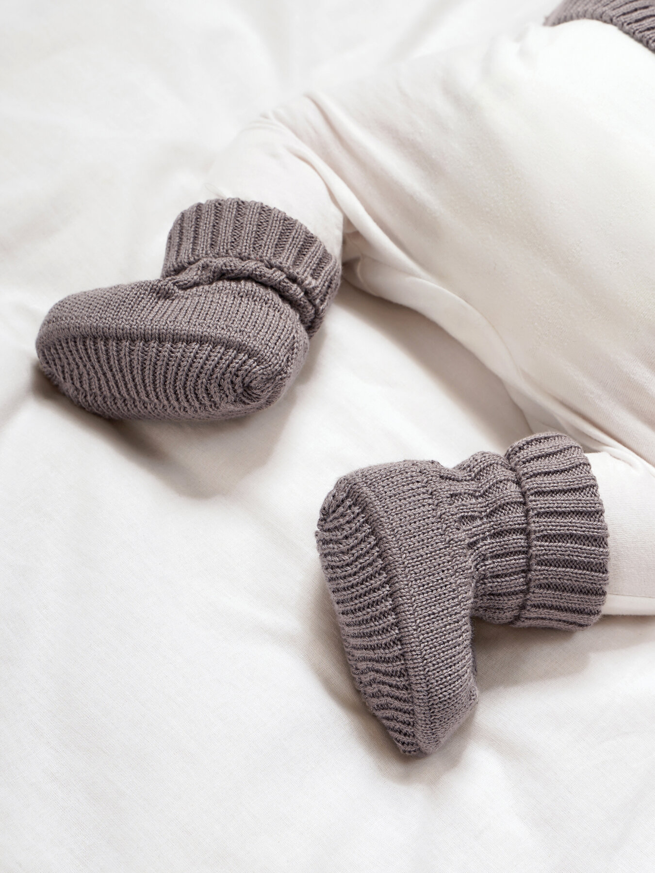 88521, Пинетки для новорожденных Happy Baby, носочки для новорожденных вязанные, серые, размер 9-10