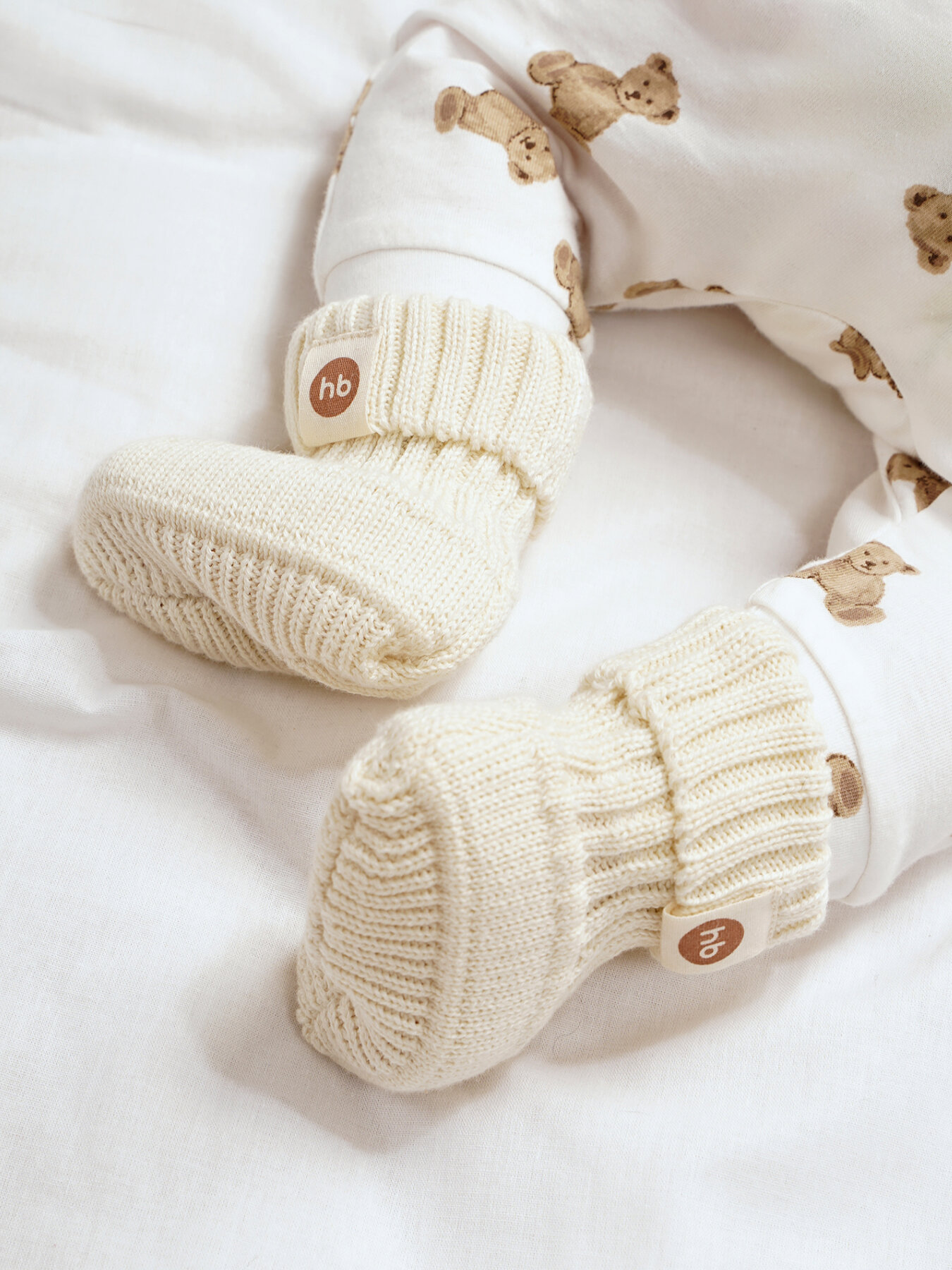 88521, Пинетки для новорожденных Happy Baby, носочки для новорожденных вязаные, бежевые, размер 11-12 1 328 ₽