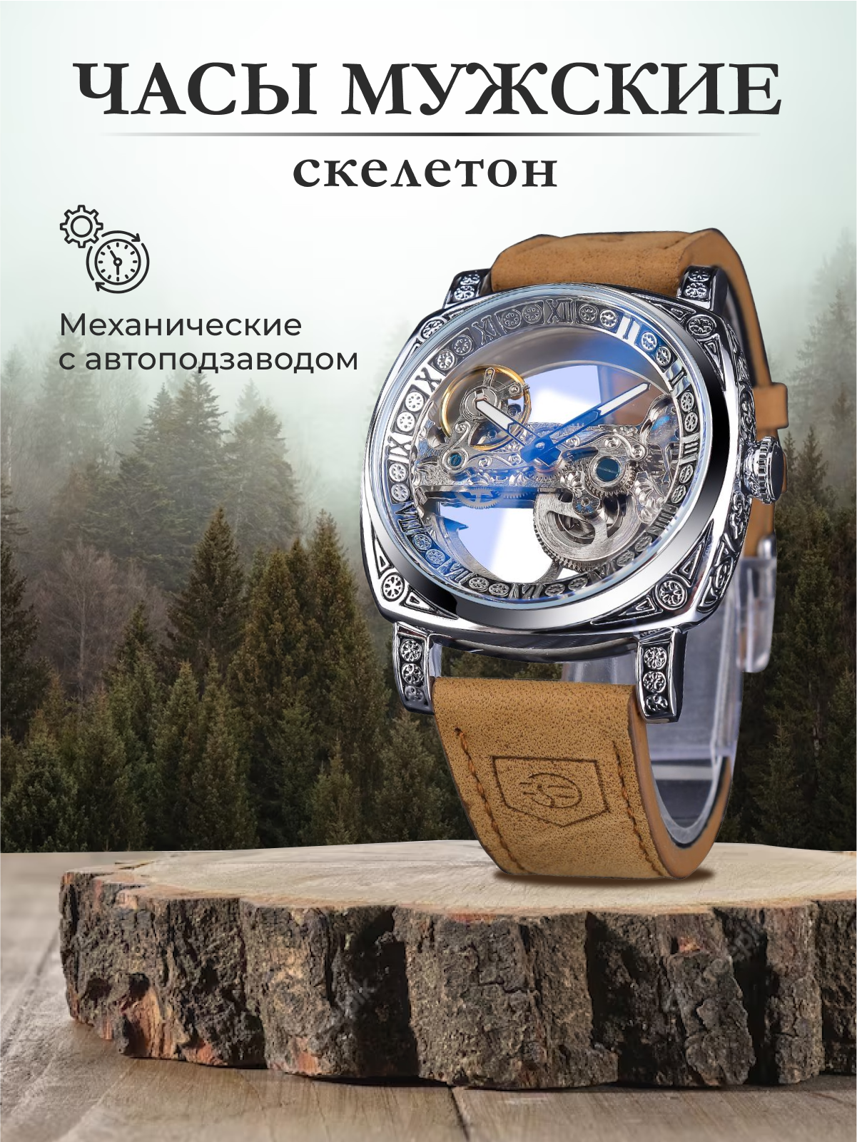 Мужские наручные механические часы с автоподзаводом Forsining информация: