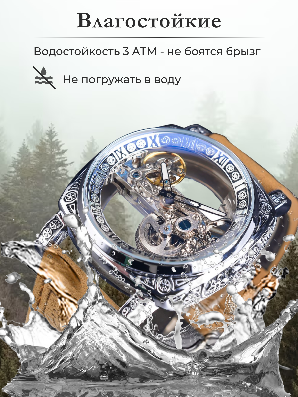 | Особенности | автоподзавод / антибликовое покрытие стекла / бесшумный механизм / водонепроницаемые / морозоустойчивость / прозрачный корпус / противоударные / скелетон |