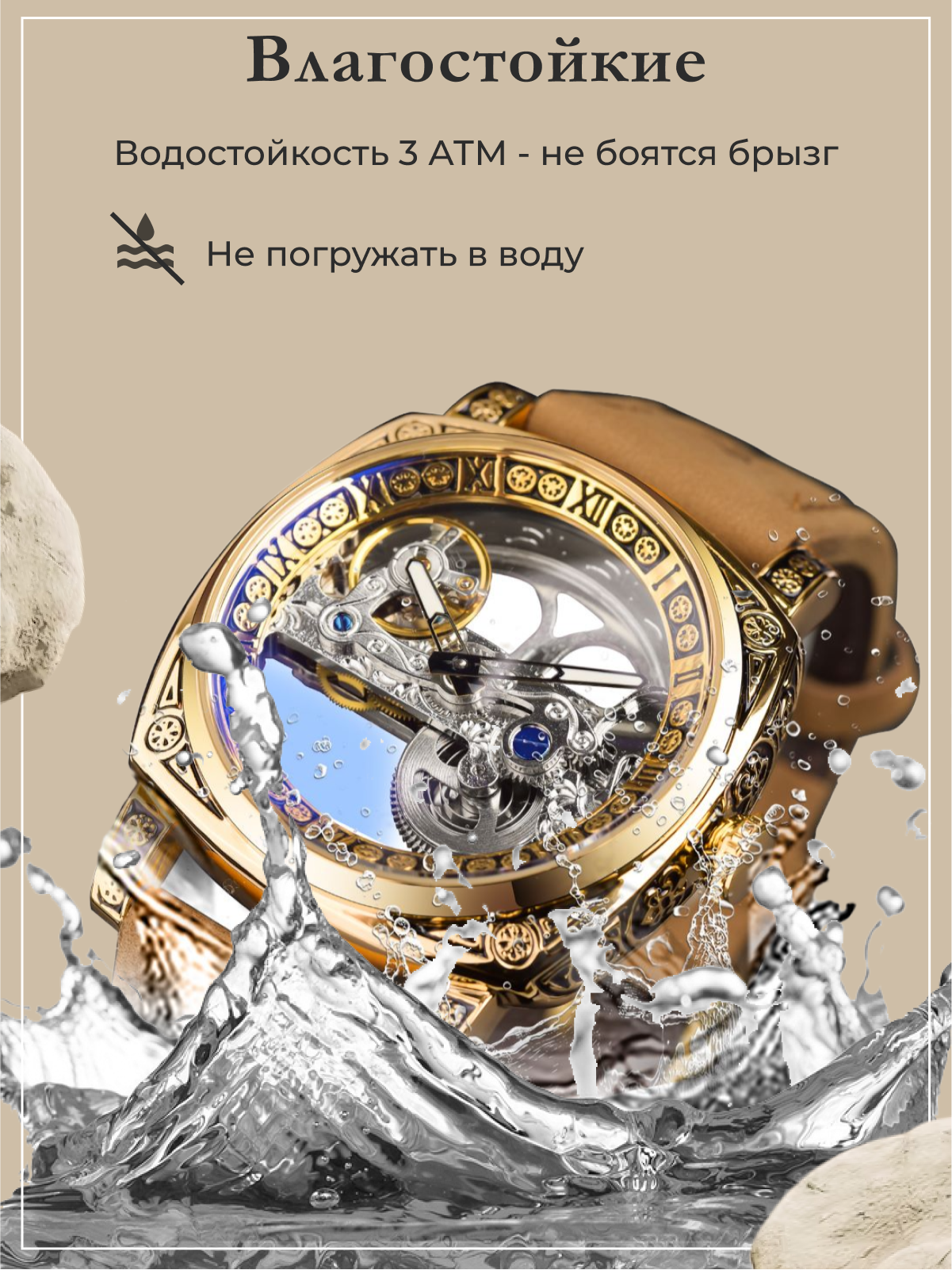 | Особенности | автоподзавод / антибликовое покрытие стекла / бесшумный механизм / водонепроницаемые / морозоустойчивость / прозрачный корпус / противоударные / скелетон |