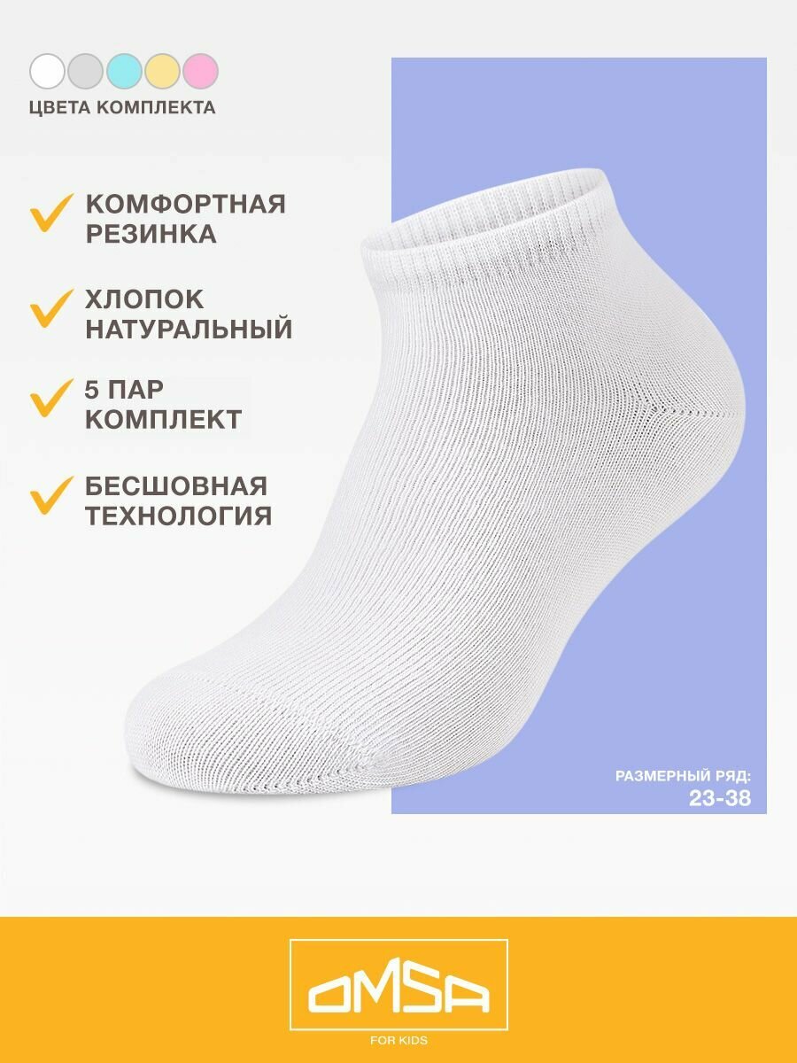 Носки детские OMSA kids Calzino 21C02, для мальчика, для девочки, короткие, цветные, хлопок , набор 5 пар, цвет Bianco, размер 23/26