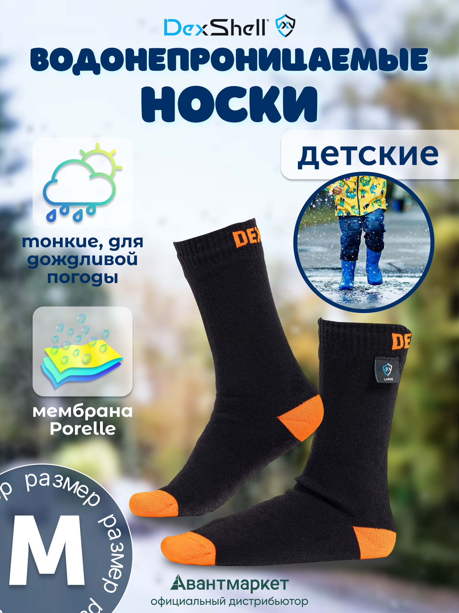 Отзывы на Водонепроницаемые носки детские DexShell Ultra Thin Children Socks M (18-20 см), черный/оранжевый, DS543BLKM
