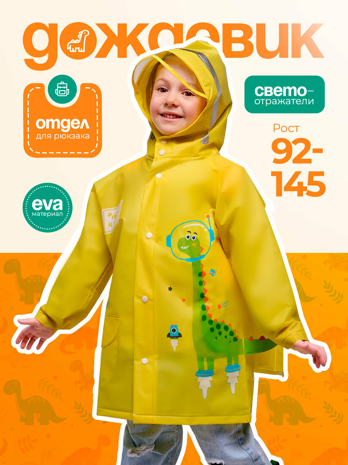 10 цен на Детский дождевик динозавр с хвостиком (желтый) S
