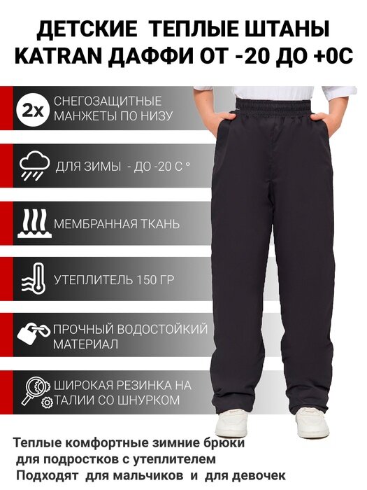 Детские зимние мембранные брюки для девочки, для прогулок и спорта KATRAN даффи (мембрана, черный), Размер: 128-134 информация: