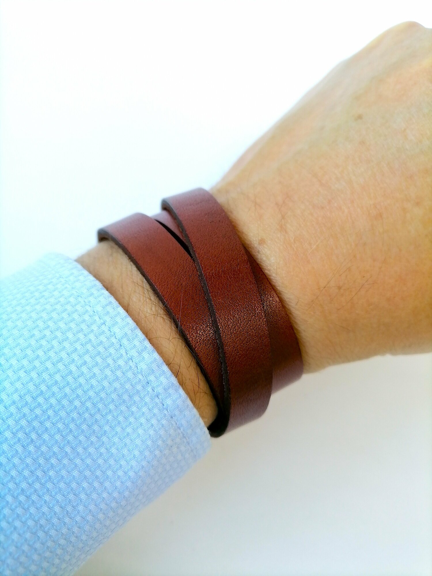 Отзывы на Браслет-намотка в три оборота. Коричневый. Мужской кожаный браслет на запястье. Тонкий браслет шириной 1 см.