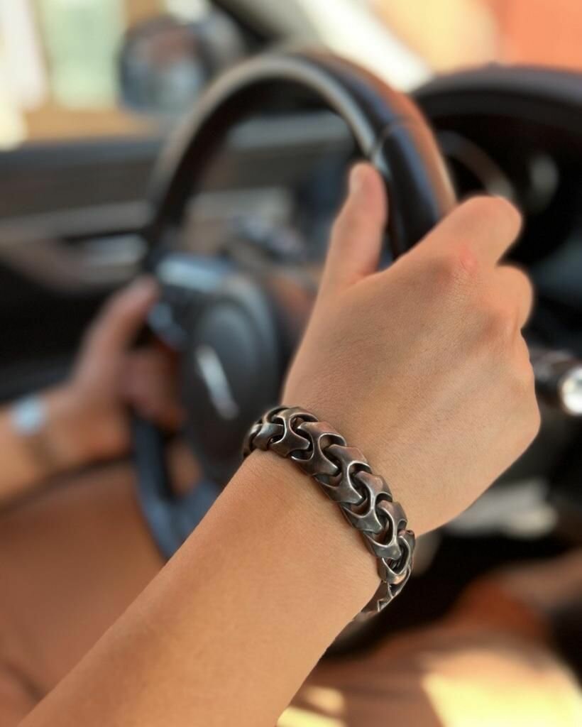Отзывы на Массивный браслет из стали, мужской с эффектом состаренного серебра/цвет серый, 21 см