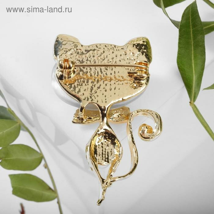 10 цен на Брошь "Кошачий глаз" ласковая кошечка, цвет бежевый в золоте