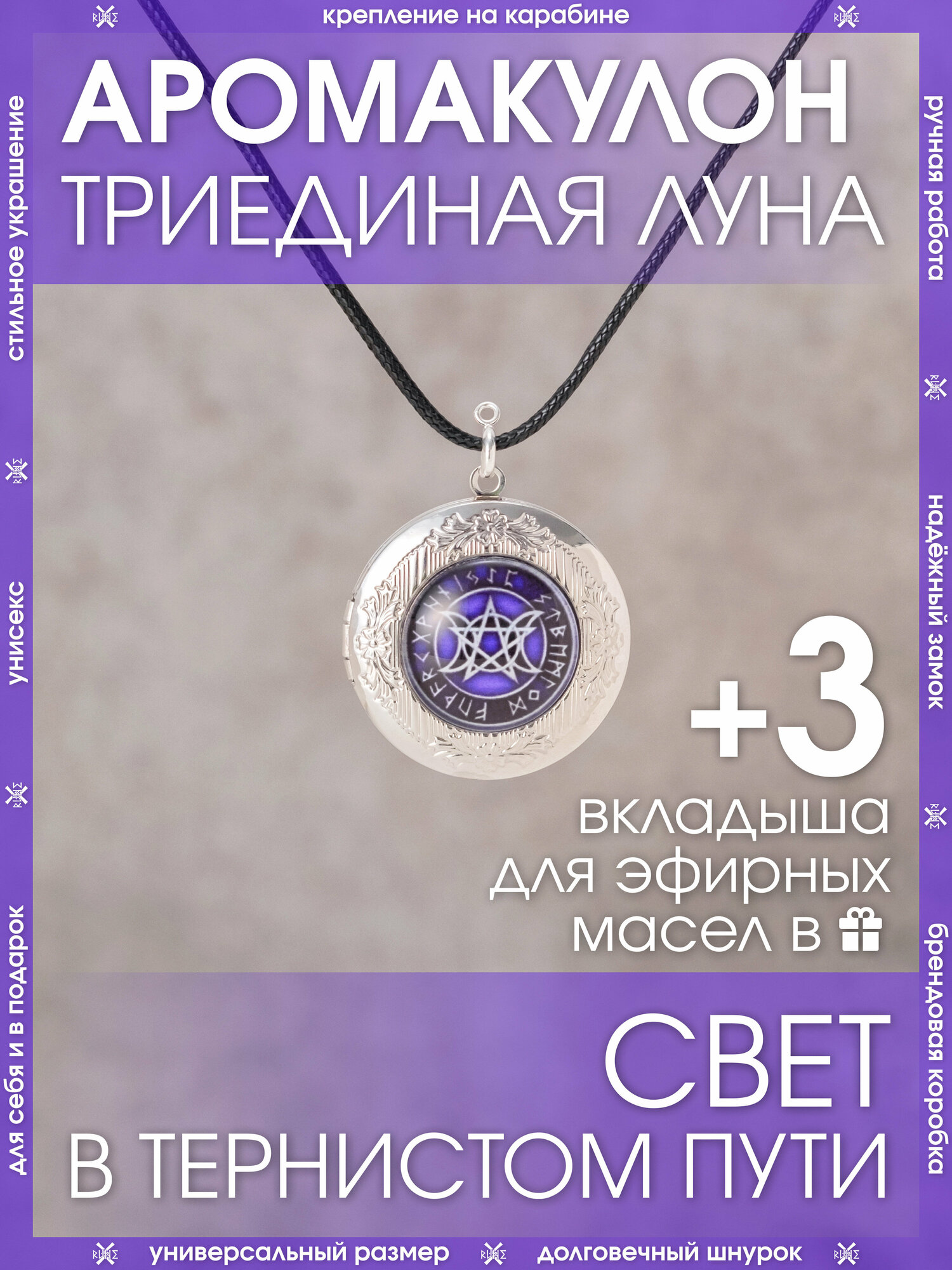 10 цен на Кулон Триединая Луна/Защитный амулет на шнурке/Охранный талисман-медальон против порчи и зла, помощник в преодолении препятствий