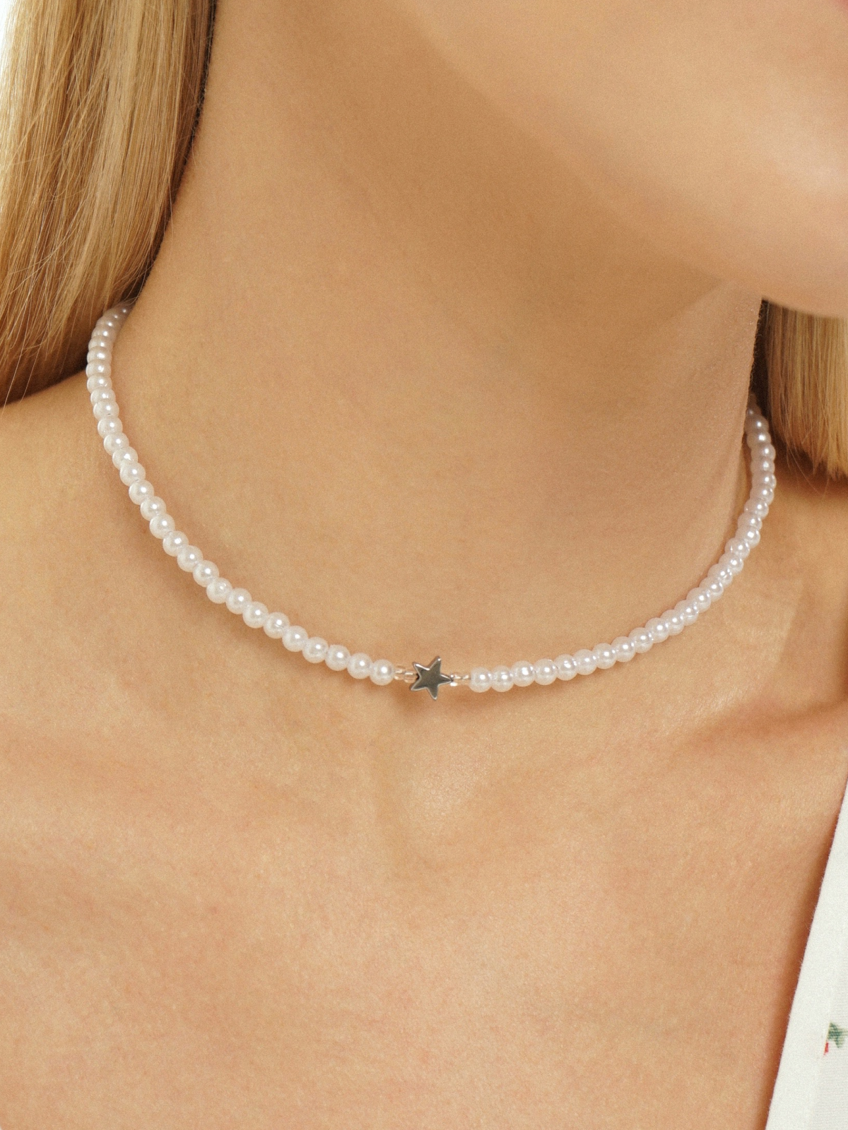 Чокер колье женское, подвеска Клевер на цепочке с перламутром