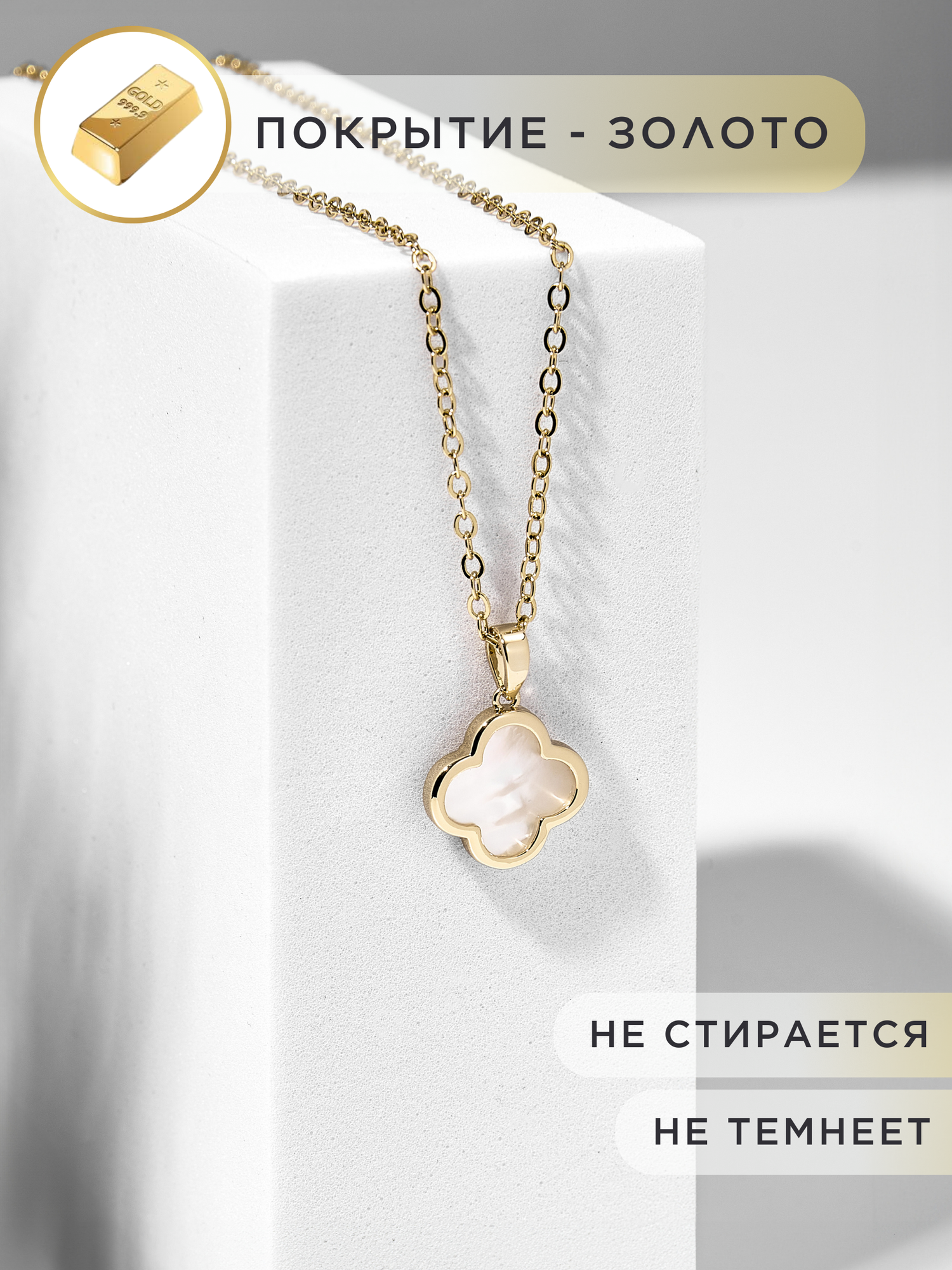 10 цен на Колье-цепочка женская со съемной подвеской "клевер" из натурального перламутра 50 см NOIMA