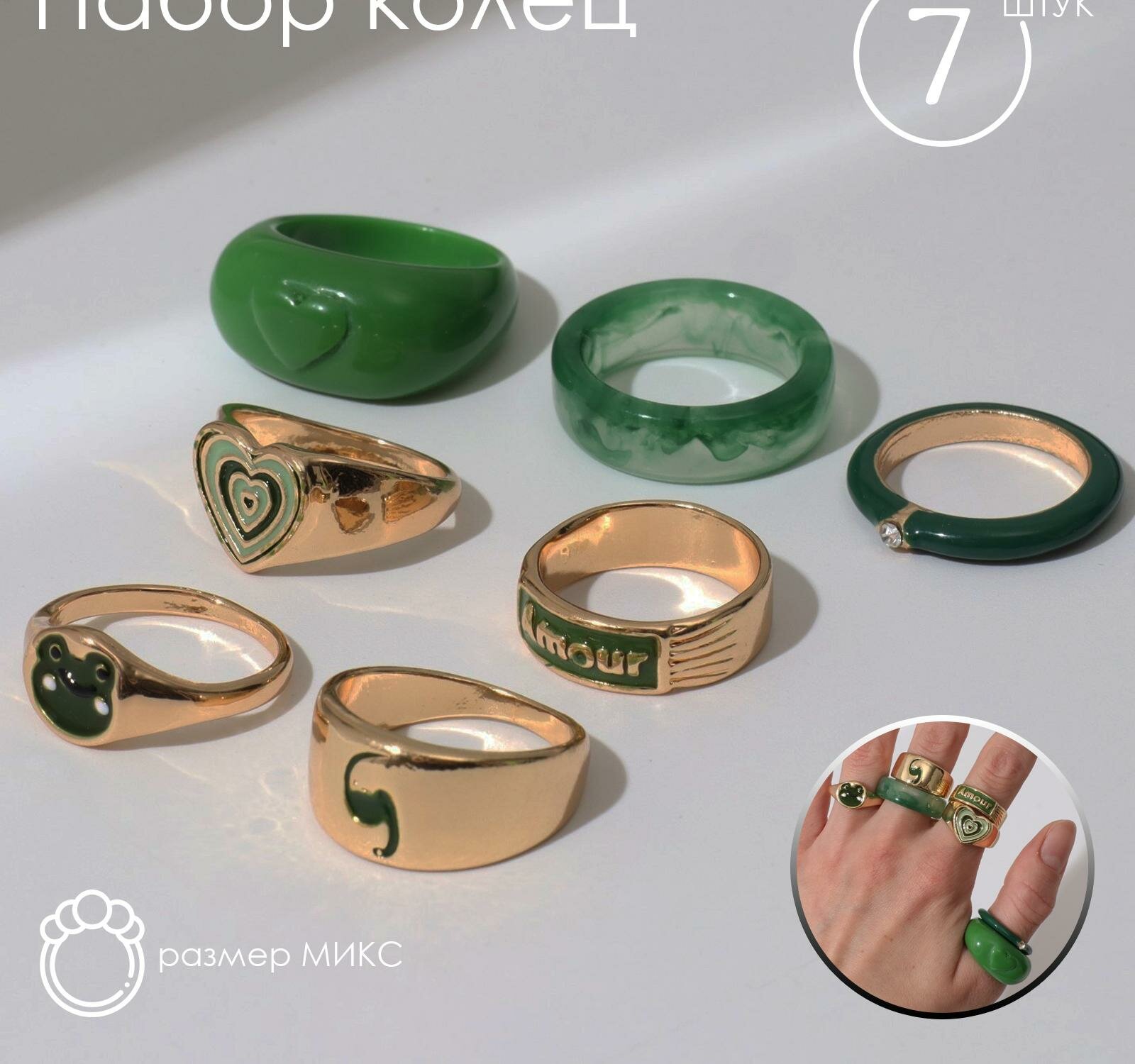 10 цен на Набор колец 7 штук AMOUR, цвет зелёный в золоте, 16-18 размеры