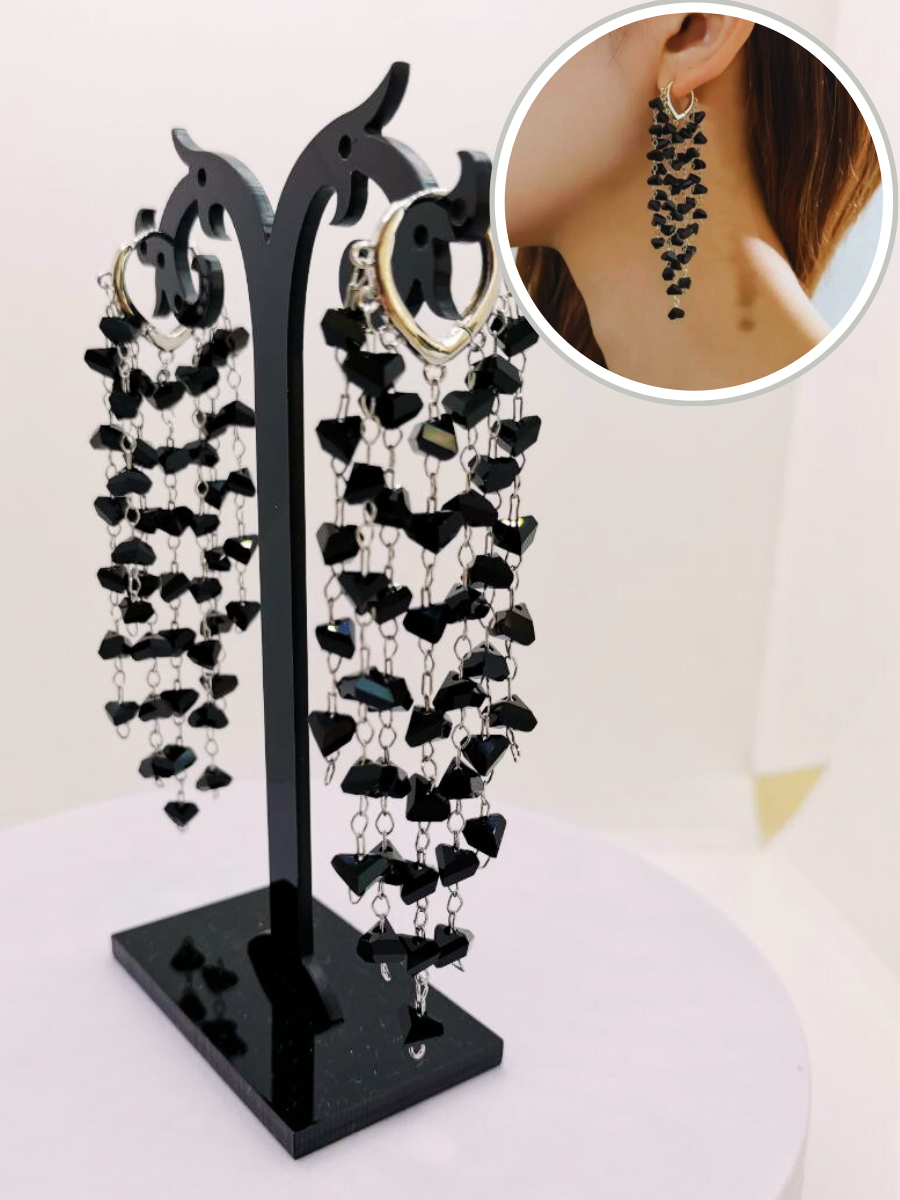 Отзывы на Эффектные модные черные длинные висячие серьги с кисточками под серебро