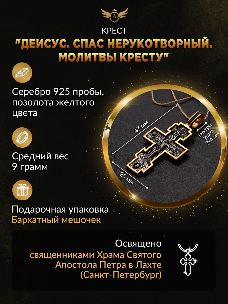 10 цен на Крест серебряный мужской нательный "Деисус. Спас Нерукотворный. Молитвы Кресту" Ангельская925 8233
