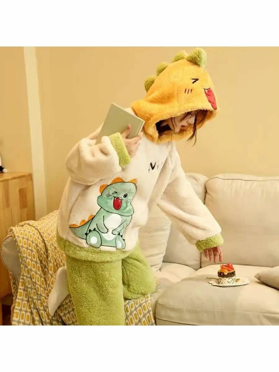 10 цен на Теплая махровая пижама Кигуруми динозавр, (46-48)