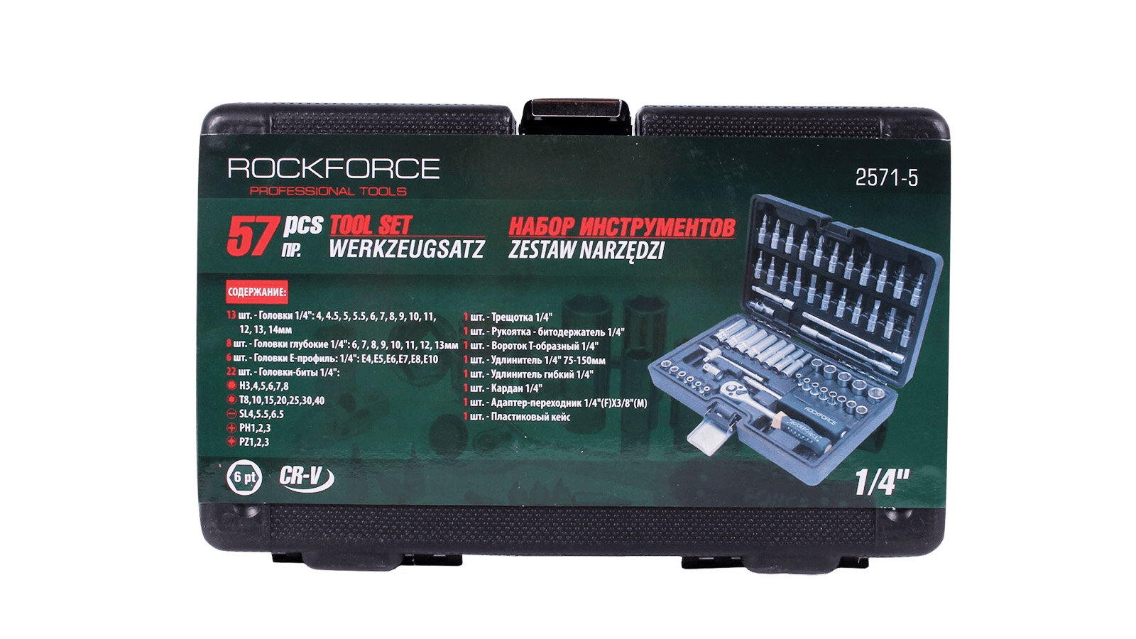 10 цен на Набор Инструментов 57 Предметов Слесарно-Монтажный 1/4" Dr 6-Ти Гран. Rockforce ROCK FORCE арт. RF-2571-5