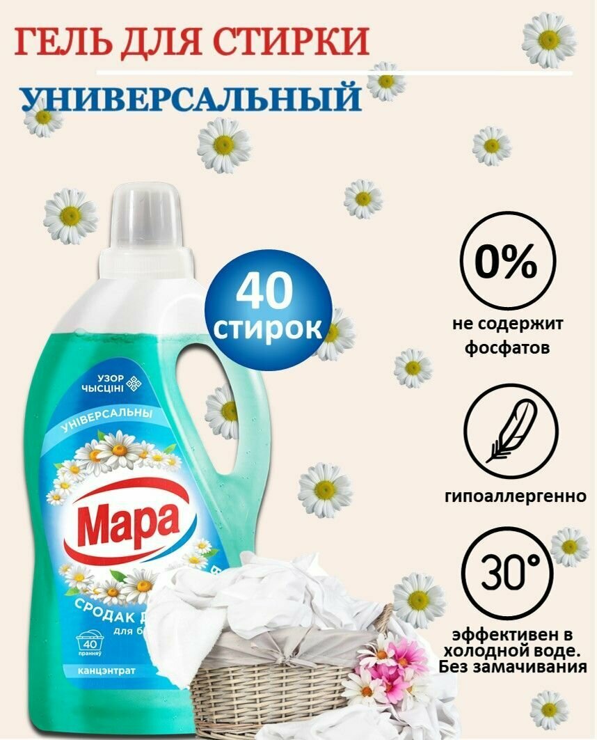 Гель для стирки Мара концентрат для белого и цветного белья, автомат, 2 л. информация: