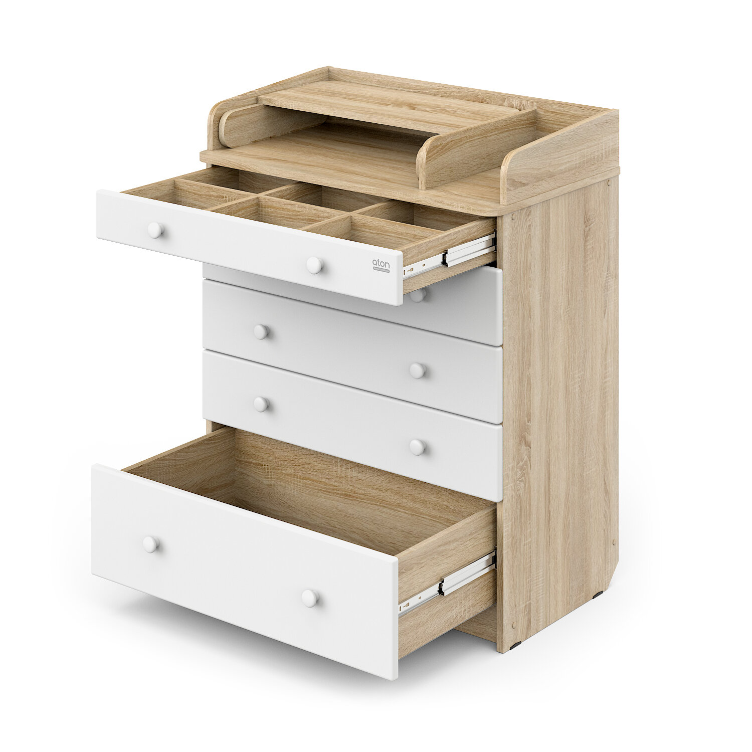 Пеленальный комод для новорожденных с ящиками и откидным столиком Сириус 604 ЛДСП, Шимо светлый/белый, Aton, 94х60х45 см