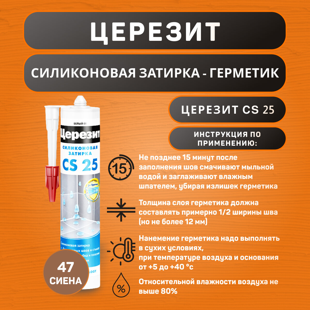 Силиконовая затирка-герметик Церезит CS 25, цвет Сиена, 280 мл информация: