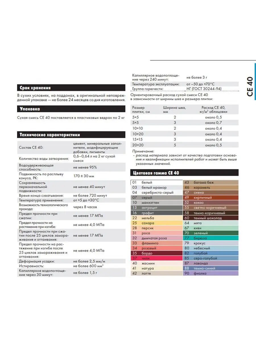 Церезит СЕ 40 Aquastatic, цвет кирпичный 49, фасовка 2 кг 638 ₽