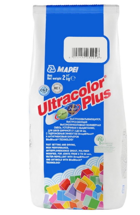 Затирка для плитки на цементной основе Mapei Ultracolor Plus (2кг) 111 Светло-Серый