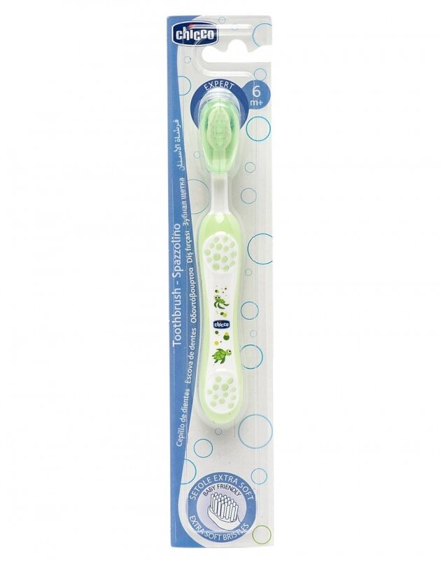 10 цен на Детская мягкая зубная щётка CHICCO первая щетка для зубов от 6 месяцев до 3 лет, с эргономичной ручкой, зелёная