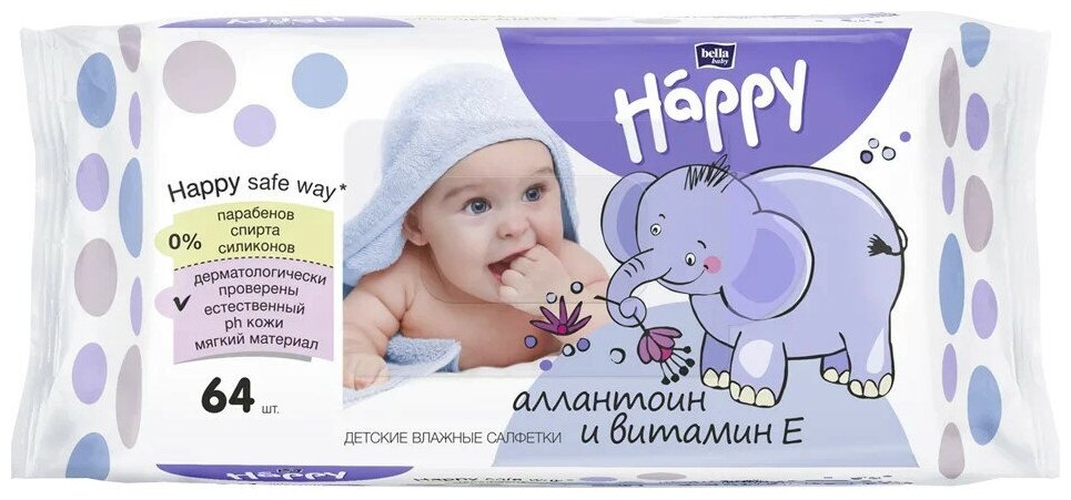 BELLA, BABY HAPPY, Детские влажные салфетки с витамином Е и аллантоином, Classic, (64 шт/упак) информация: