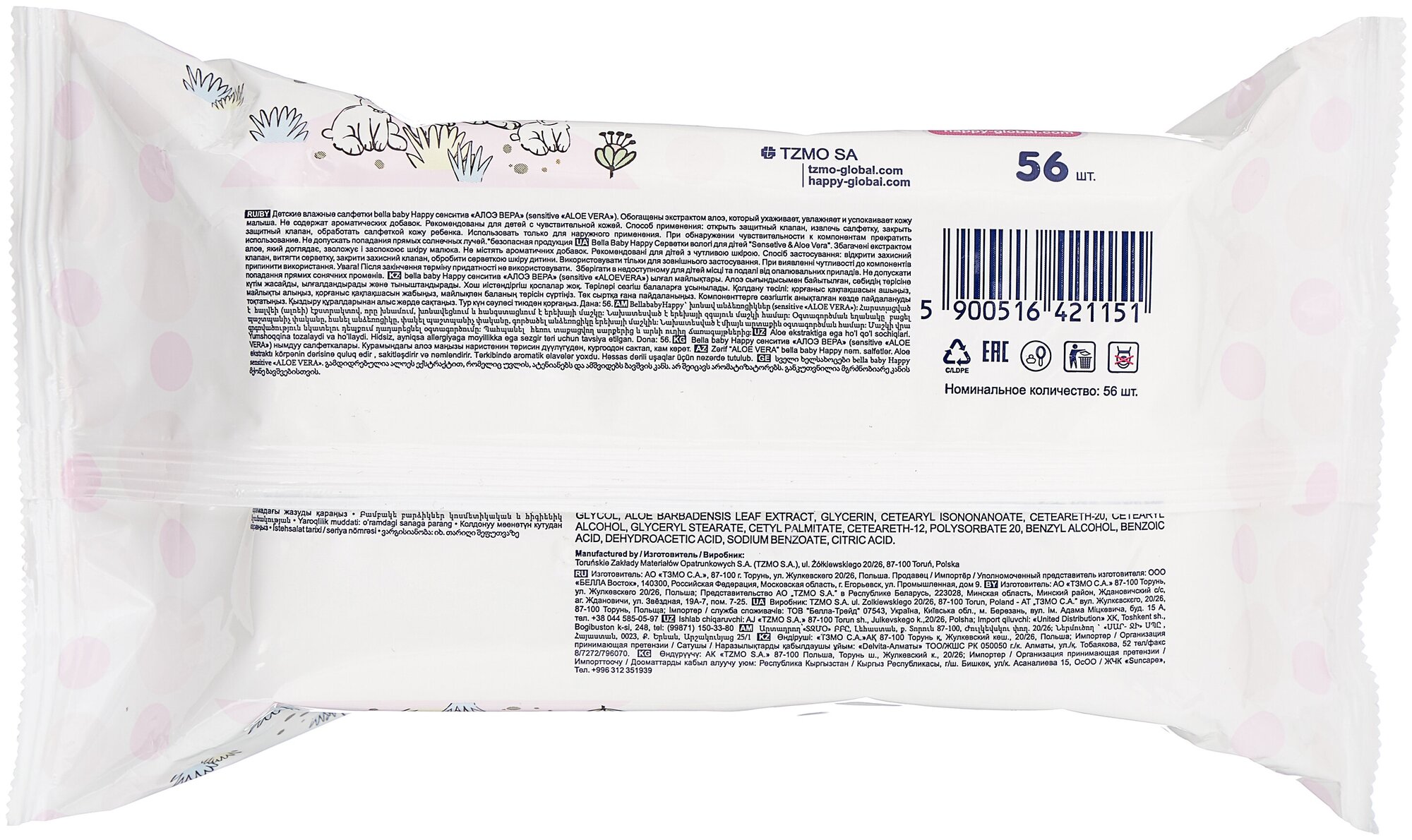BELLA, BABY HAPPY, Салфетки влажные детские, classic sensitive (56 шт/упак) информация: