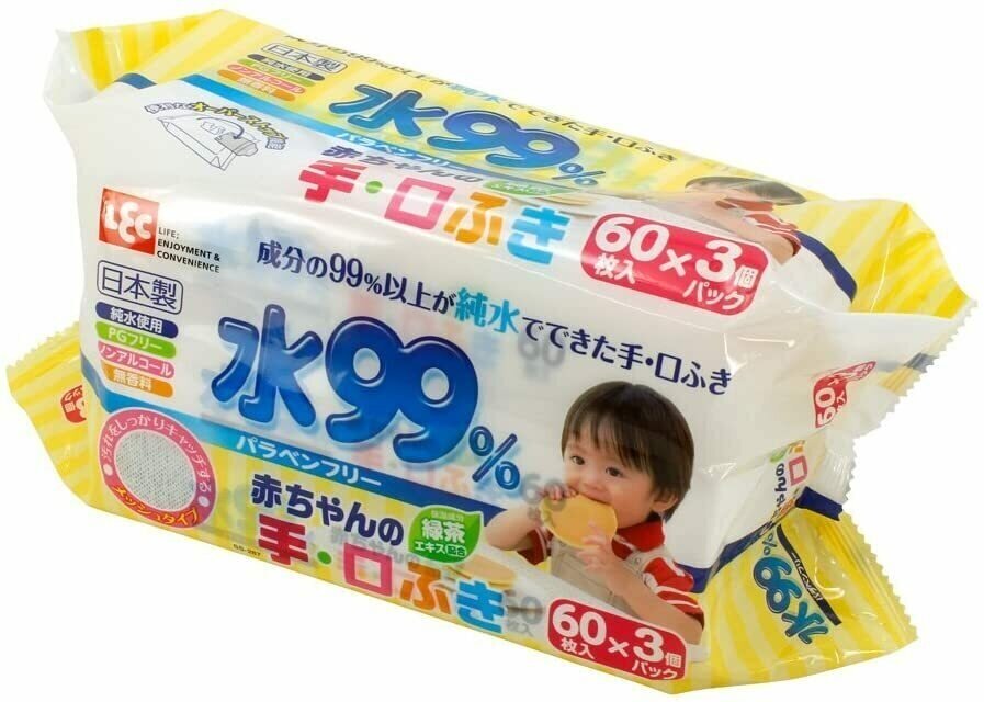 iPLUS Влажные салфетки 99% детские для рук, лица, игрушек, сосок, бутылочек, поильников с экстрактом зеленого чая, рельефные, спайка 60 шт. * 3 упаковки информация: