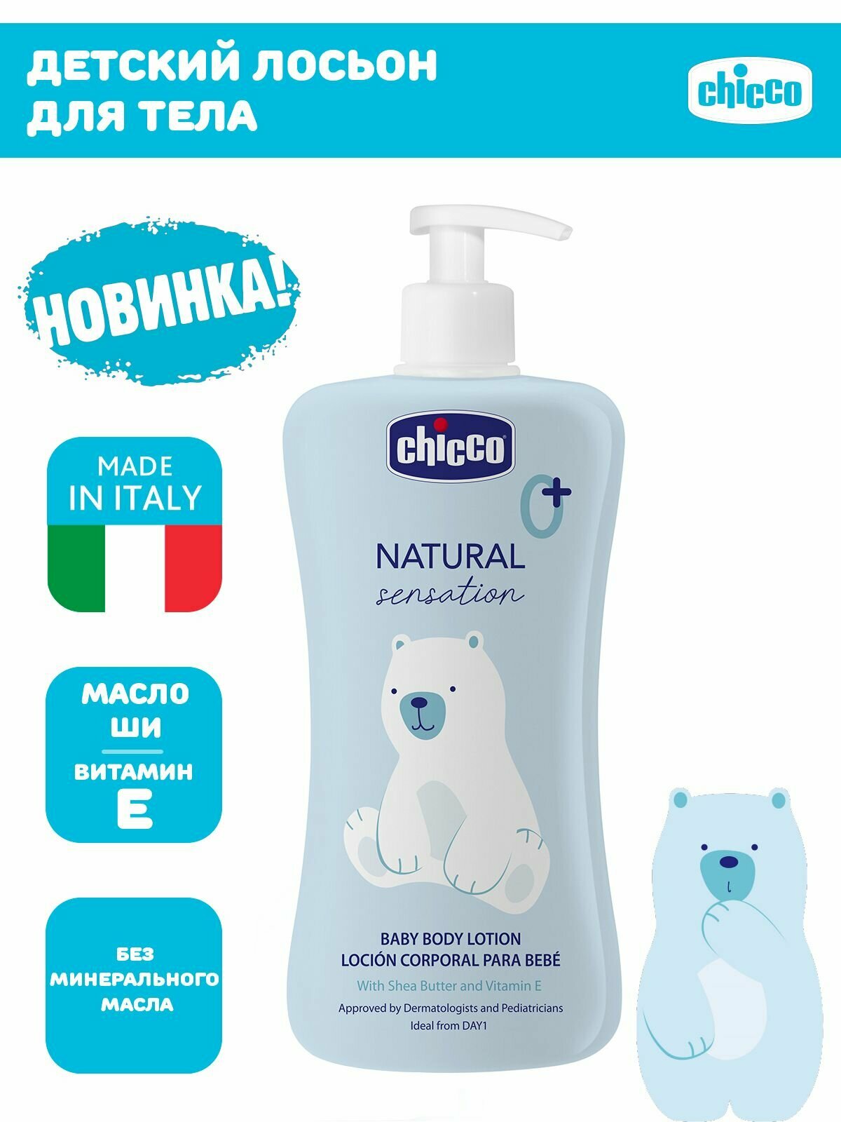 Увлажняющее детское молочко для тела Chicco Natural Sensation Лосьон для новорожденных 500 мл 0+ информация:
