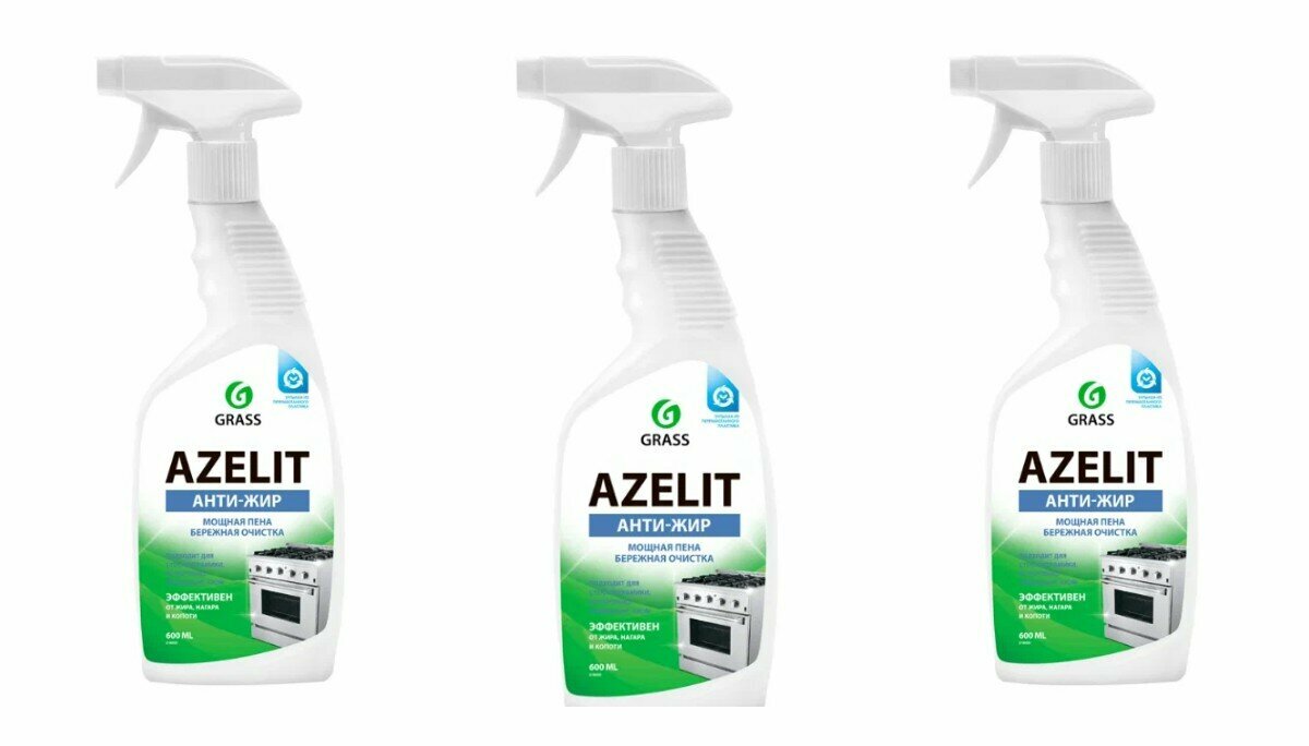 Grass Средство для удаления жира, нагара и копоти Azelit, Анти-жир, Универсальное, 600 мл, 3 шт 1 052 ₽