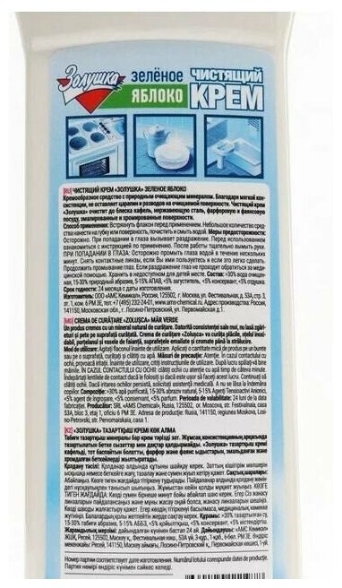 Золушка Чистящий крем Зеленое яблоко 300мл информация: