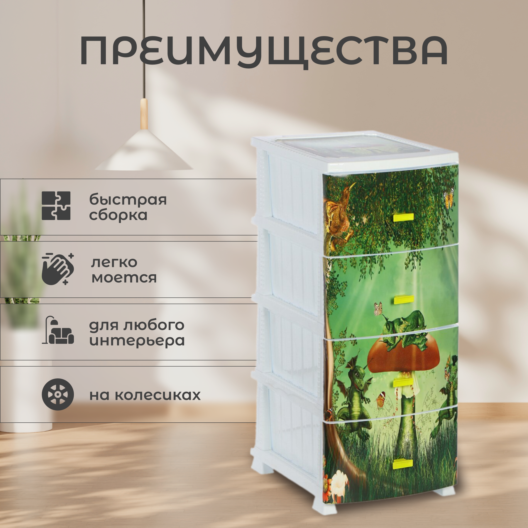 Комод детский 4 ящика, Дракон, 38х47х98 см, белый, Росспласт, РП-451 4 684 ₽
